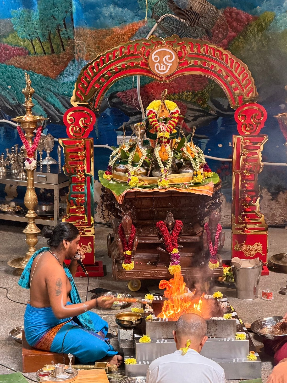 Чел бормочет какие-то мантры в микрофон и жжёт фигню
